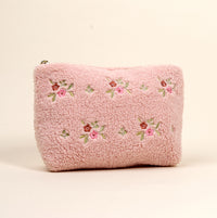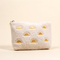 Bring a cozy, stylish touch to your everyday essentials with our teddy pouches. Made from soft sherpa fabric and finished with a wipeable interior lining, they blend charm with practicality for on-the-go organization. The polished gold zipper and printed inner fabric make the pouch just as delightful on the inside as it is on the outside. Mix and match with coordinating sizes for a darling, cohesive accessory set that works beautifully year-round.