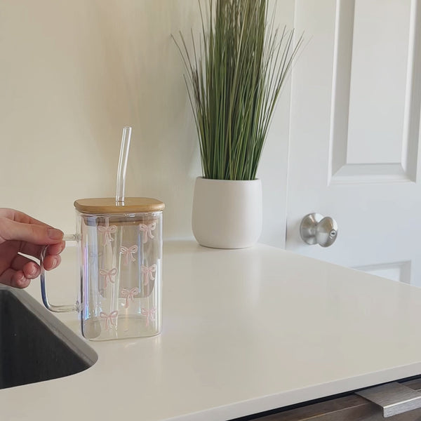 Bows Pink Square Glass Cup