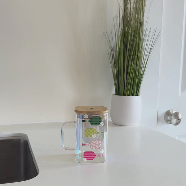 Pickleball Paddles Square Glass Cup