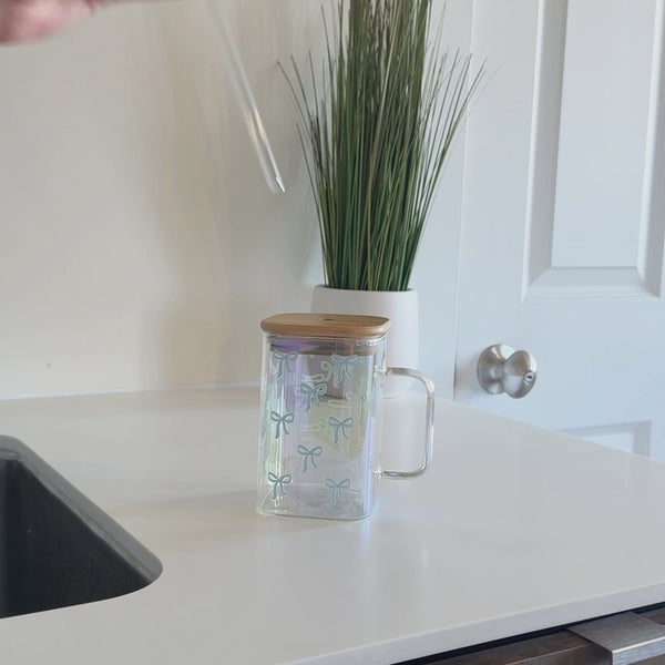 Bows Blue Square Glass Cup