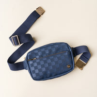 Introducing the Urban Check Belt Bag - the ultimate on-the-go accessory for the modern woman. With its elevated and trendy design, featuring a gold buckle detail and checker vegan leather, this bag seamlessly combines fashion and function. The adjustable strap and front/back pockets add convenience to its style. Elevate your style with this functional and fashionable belt bag!